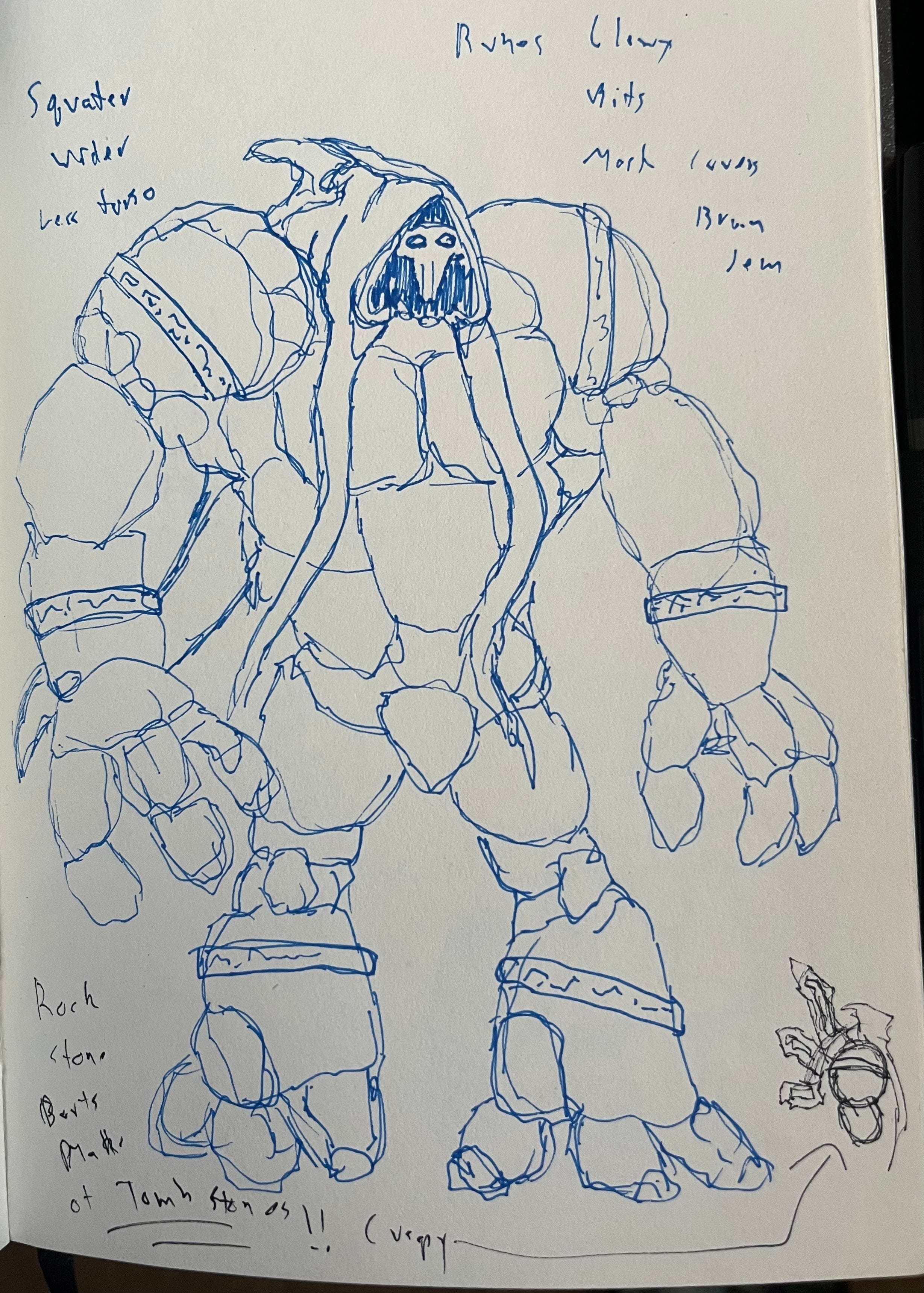 With all the amazing energy of creating this unique character hot on my heels we promptly never played the game and this painfully old sketch became just another page lost in a sketchbook for years. But like most great thoughts my brain wouldn’t let me forget about Tombwraith and kept me thinking and creating more lore and designs subconsciously until I was more ready to realize them.